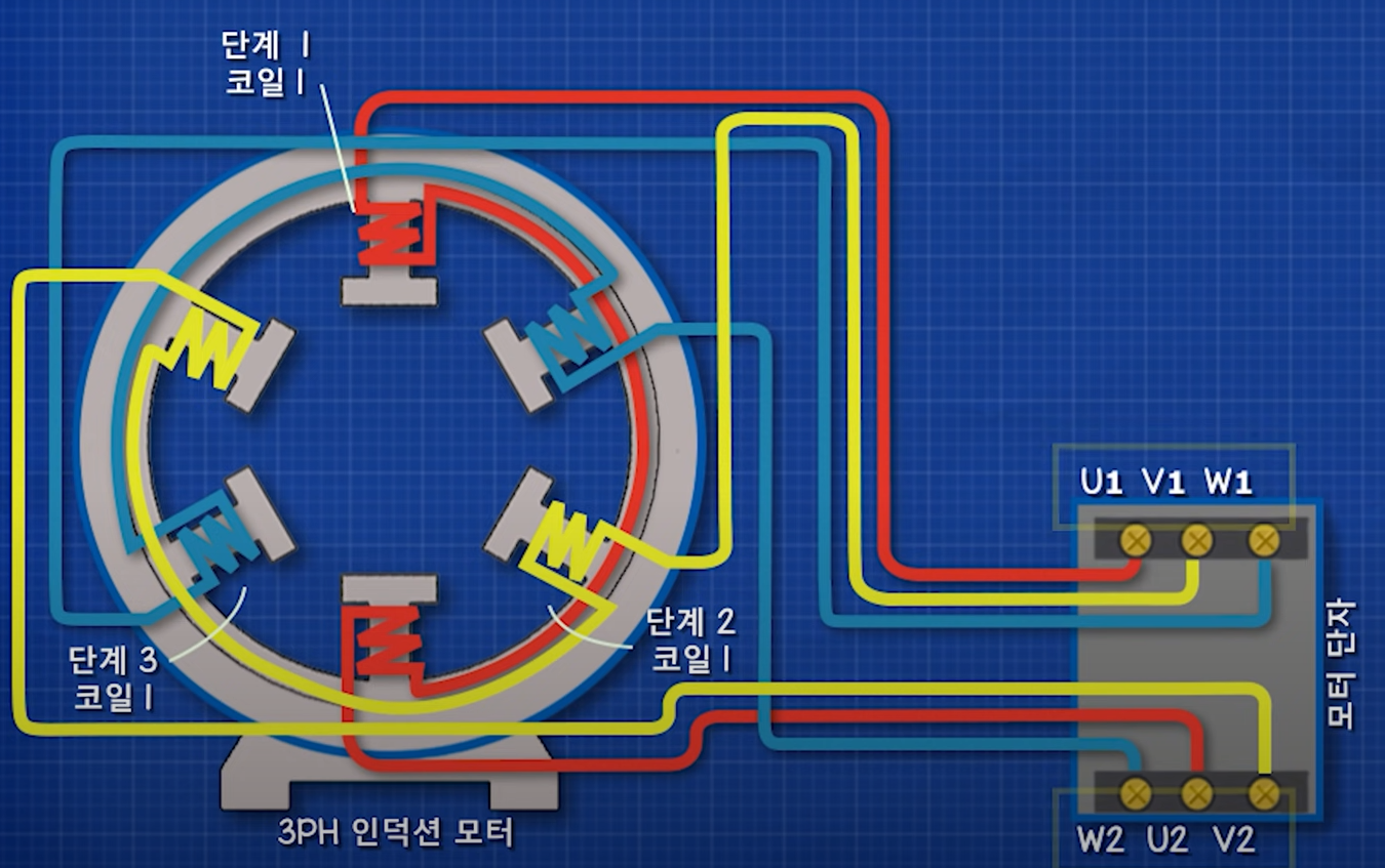 이 3개의 코일은 서로 (개방)분리되어 있어, 따로따로 전류를 흘려줄 수 있습니다.