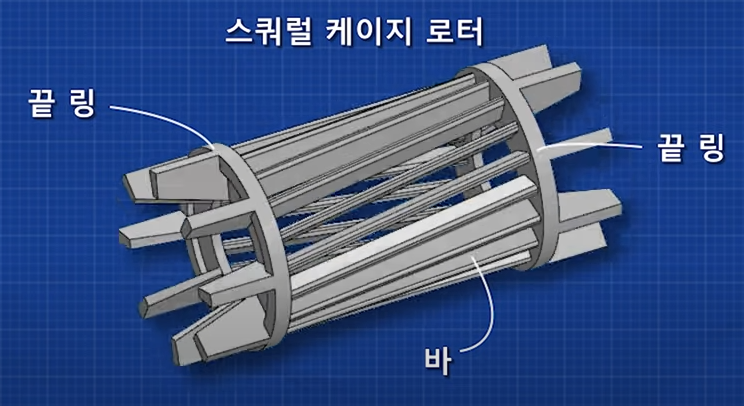 "스쿼럴 케이지 로터"라고도 불리는 이 로터는 끝과 끝에 링이 달려있어 동시에 회전하고, 다람쥐가 돌리는 쳇바퀴과 같은 형상을 하고 있는 것이 특징입니다.